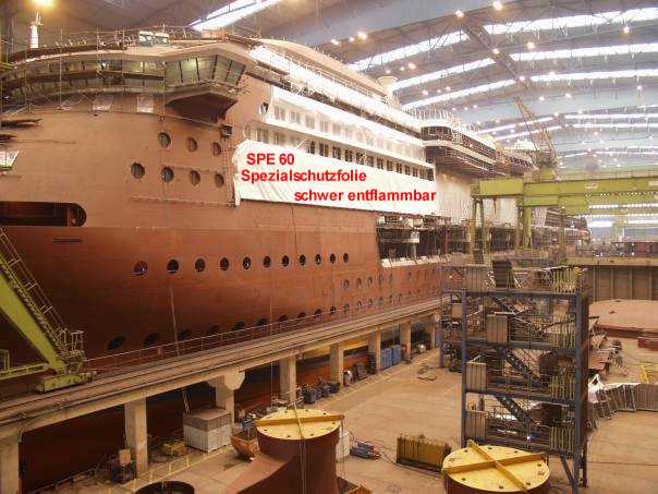 „SPE Folie" wird aus schwer entflammbaren Kunststoff hergestellt.